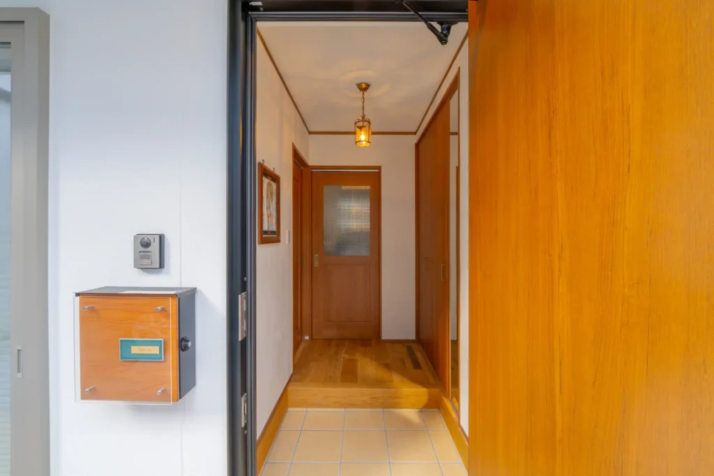 木目調のやさしい玄関を抜けると、空間の雰囲気が一気に変わります。