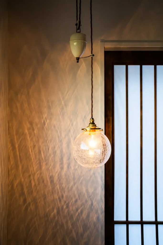 こだわりの照明が放つやさしい光に癒されながら、障子越しに入る自然光の強弱で、時計を見なくても時間帯が分かる。