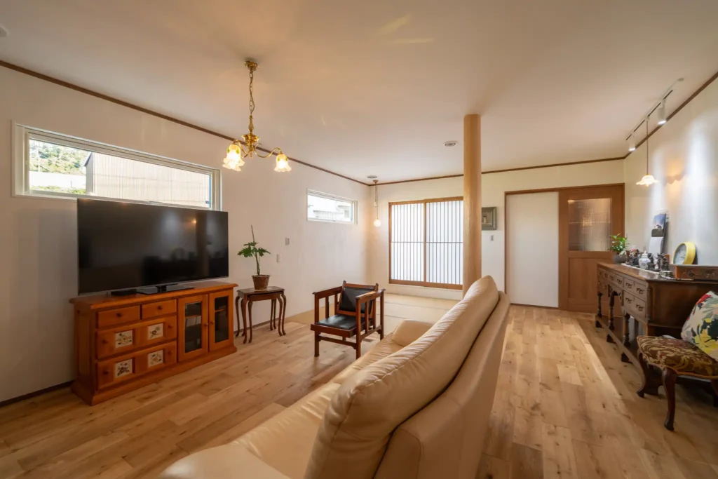 そのまま続くリビングでは、ソファでくつろぎながらテレビや映画を楽しみ、